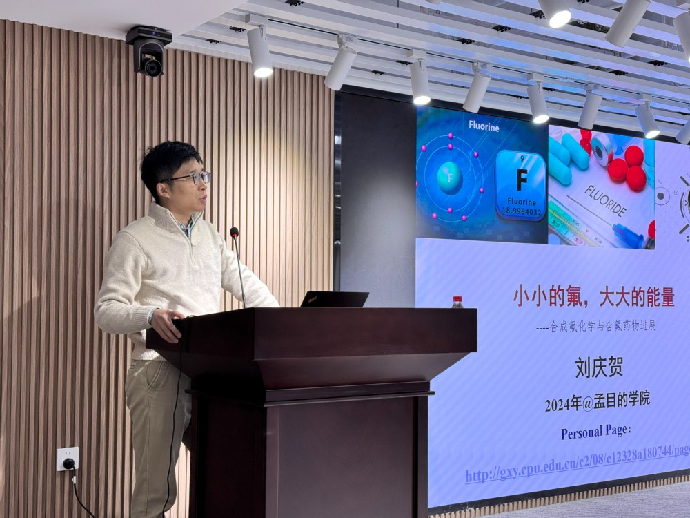 2024年12月18日,XCsports第24期药缘科普讲座在孟目的书院博专会堂顺利举办。本次讲座邀请工公司刘庆贺教授带来主题为《小小的氟、大大的能量——合成氟化学与含氟药物》的精彩报告,旨在深入剖析含氟药物的发展历程和最新科研进展。