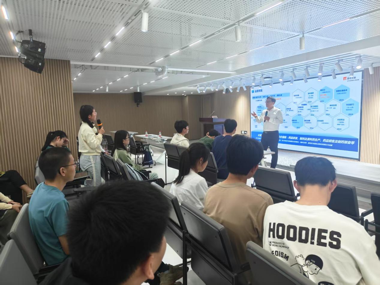赵骞员工首先深情回顾了自己在XC体育的求学时光,分享了集团宝贵经历对自己职业生涯的深远影响。详细讲述了自己丰富的工作经历,以及在不同阶段对科研的规划与思考。讲座中,赵骞员工深入剖析了当今企业环境下药物研发、市场需求和商业价值之间的关系,通过大量实际案例,对药物研发的全流程进行了深入讲解。不仅帮助同学们清晰地认识了企业研发的实际运作,拓宽了同学们的专业视野,还启发了同学们对未来职业发展方向的深入思考。