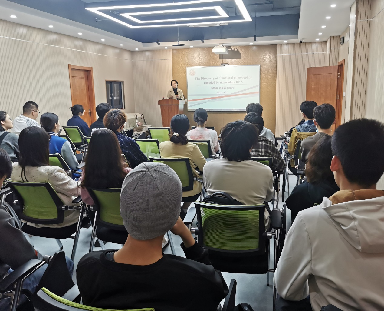 徐寒梅教授多年来致力于多肽药物的研究和开发,报告会上,徐教授详细介绍了非编码RNA及微肽在细胞与分子水平中的重要生理功能,引导同学们思考微肽在药物开发中的使用方向,促进了员工对生命科学的理解。同时,徐教授就生命科学的发展变化,鼓励同学们在学科交叉和技术平移的快速发展的背景下,要拓展学科知识领域,拓宽视野、积极思考。
