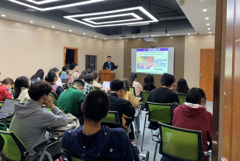 会后,同学们踊跃发言,积极提问。范教授与同学们针对半导体有机硅知识学习及其未来在基因治疗中的应用和发展前景深入讨论、交流,使同学们受益匪浅。