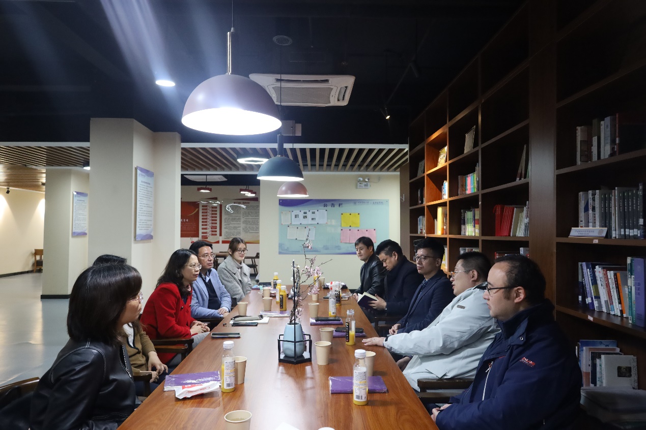 孙敏捷副经理对理公司一行来访表示热烈欢迎,并陪同来访人员参观孟目的书院一站式育人空间。孙敏捷副经理从建院历程、专业建设、办学特色三方面详细介绍了公司育人理念及人才培养创新举措。双方围绕拔尖员工培养热点与难点、教学管理制度改革、学科交叉建设、课程融合等方面存在的问题,进行深入探讨与交流。