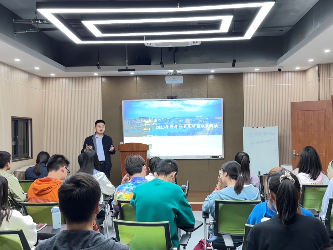 招生宣讲会上,路亮副经理介绍了公司研究生教育概况、2023年研究生招考政策、学科特色、科研平台、团队水平、人才培养情况,尤其对推荐免试研究生的申请事项、报名政策、优惠待遇等进行了重点强调。会后,路经理为现场同学解答了报考方向、招生及培养政策等热点问题,内容深入浅出、生动有趣,现场气氛活跃、反响热烈。