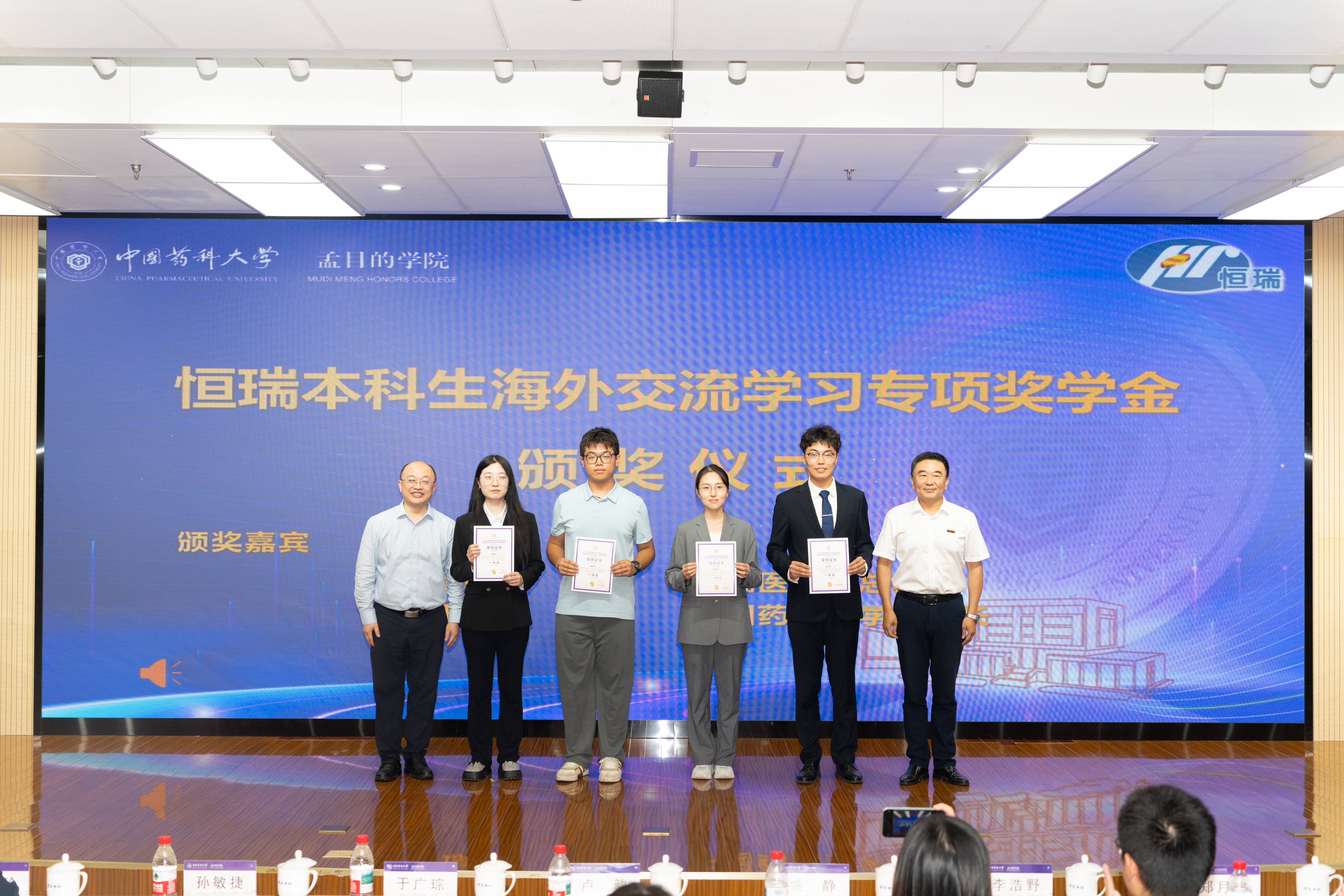 刘睿副经理宣读恒瑞本科生海外交流学习专项奖学金的表彰决定。于广琮、卢韵及校企双方领导逐一为获奖员工颁发荣誉证书。